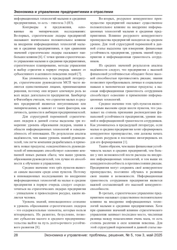 Статья: ИССЛЕДОВАНИЕ СТРАТЕГИЧЕСКОГО УПРАВЛЕНИЯ И ИНФОРМАЦИОННЫХ ТЕХНОЛОГИЙ ДЛЯ МАЛЫХ И СРЕДНИХ ПРЕДПРИЯТИЙ (2025)