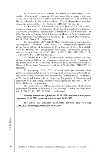 Журнал: ВЕСТНИК ЮЖНО-УРАЛЬСКОГО ГОСУДАРСТВЕННОГО ГУМАНИТАРНО-ПЕДАГОГИЧЕСКОГО УНИВЕРСИТЕТА
