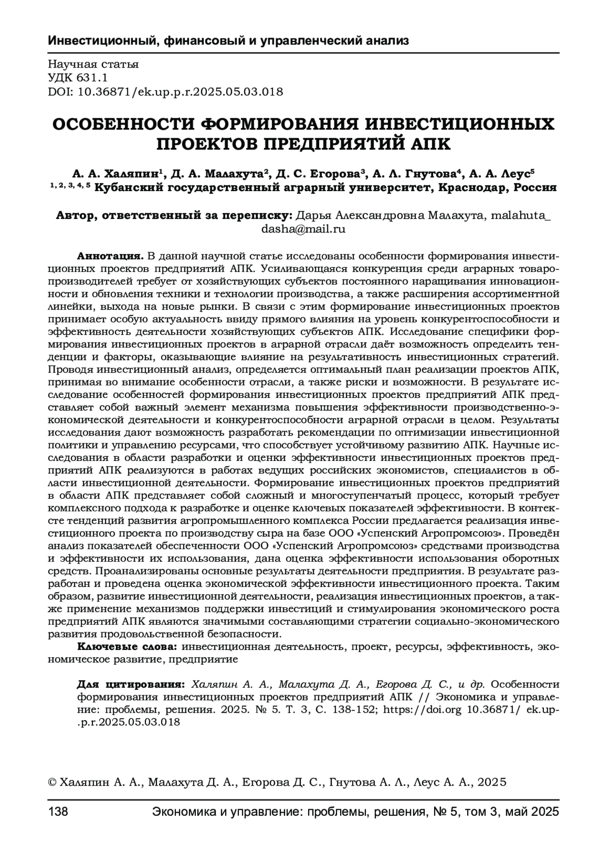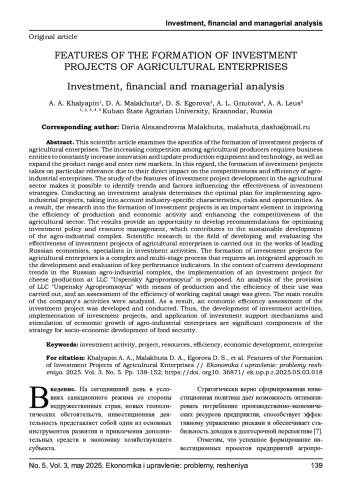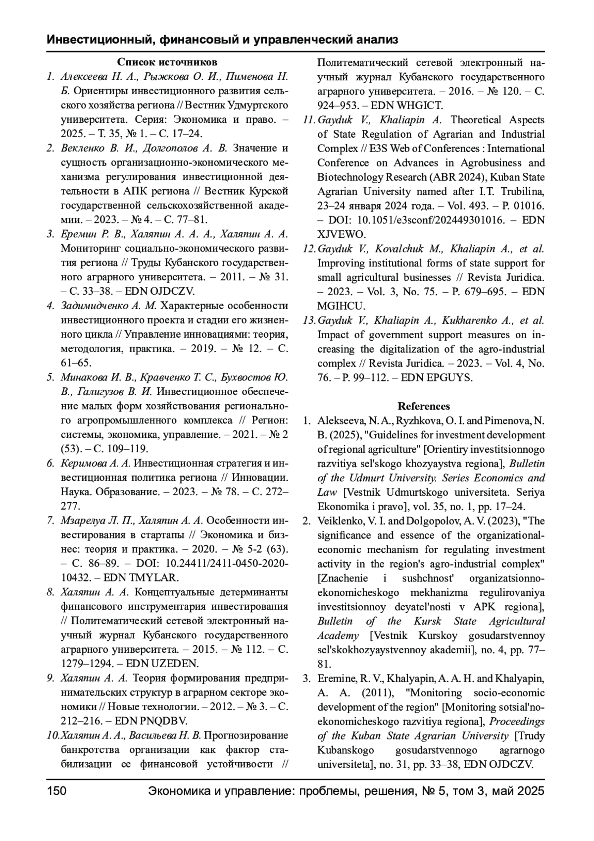 11. Gayduk V., Khaliapin A. Theoretical Aspects of State Regulation of Agrarian and Industrial Complex // E3S Web of Conferences: International Conference on Advances in Agrobusiness and Biotechnology Research (ABR 2024), Kuban State Agrarian University named after I.T. Trubilina, 23-24 января 2024 года. - Vol. 493. - P. 01016. -. DOI: 10.1051/e3sconf/202449301016 EDN: XJVEWO