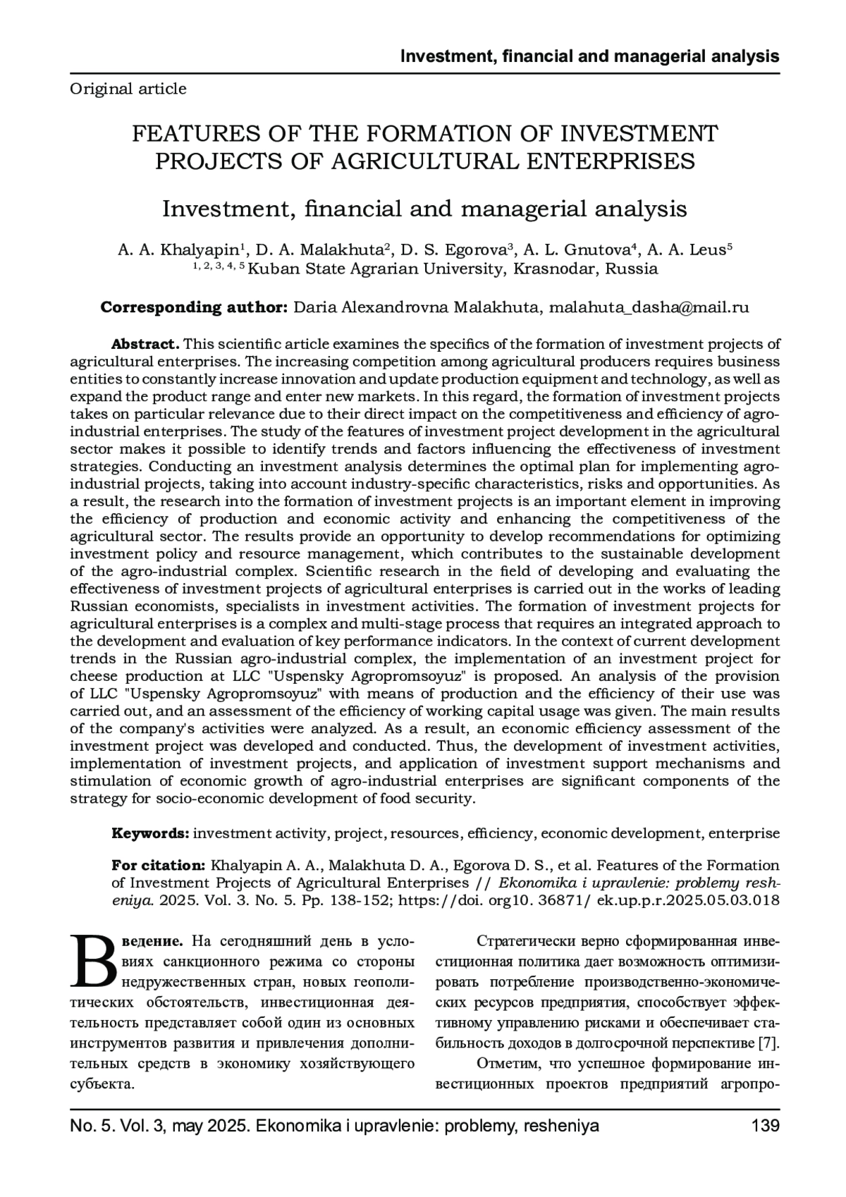 2. Векленко В. И., Долгополов А. В. Значение и сущность организационно-экономического механизма регулирования инвестиционной деятельности в АПК региона // Вестник Курской государственной сельскохозяйственной академии. - 2023. - № 4. - С. 77-81. EDN: RVBJTG