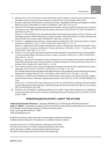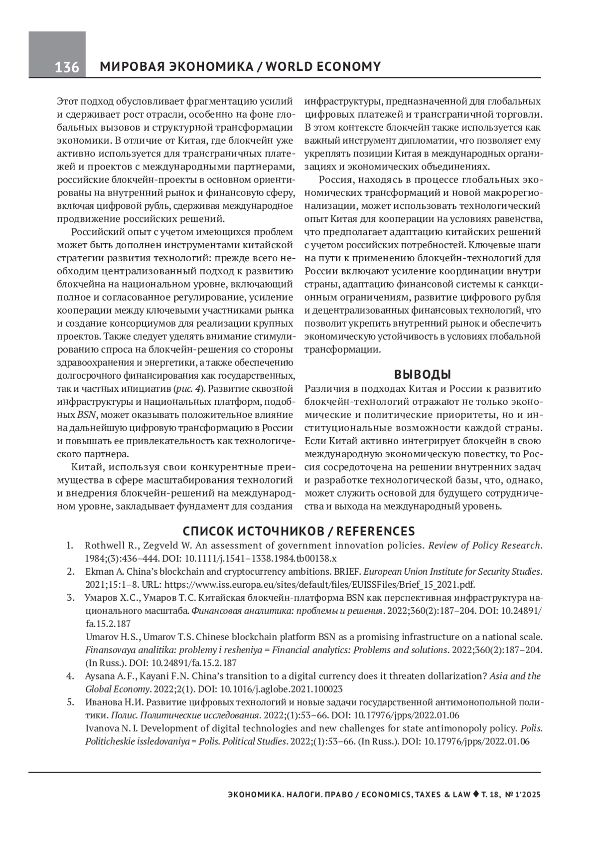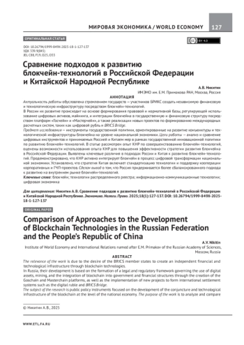 НИКИТИН А. В. СРАВНЕНИЕ ПОДХОДОВ К РАЗВИТИЮ БЛОКЧЕЙН-ТЕХНОЛОГИЙ В РОССИЙСКОЙ ФЕДЕРАЦИИ И КИТАЙСКОЙ НАРОДНОЙ РЕСПУБЛИКЕ // ЭКОНОМИКА. НАЛОГИ. ПРАВО. 2025. Т. 18 № 1
