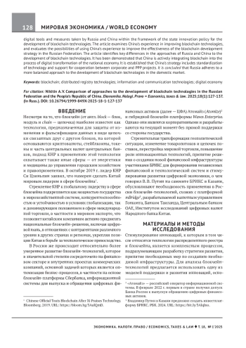 Статья: СРАВНЕНИЕ ПОДХОДОВ К РАЗВИТИЮ БЛОКЧЕЙН-ТЕХНОЛОГИЙ В РОССИЙСКОЙ ФЕДЕРАЦИИ И КИТАЙСКОЙ НАРОДНОЙ РЕСПУБЛИКЕ (2025)