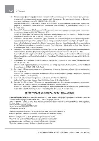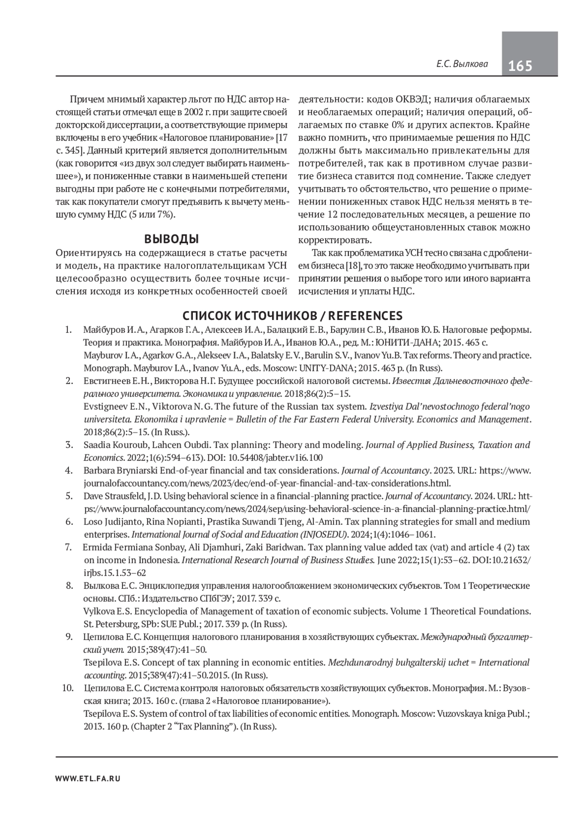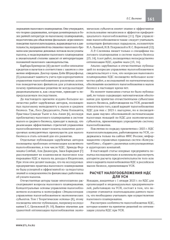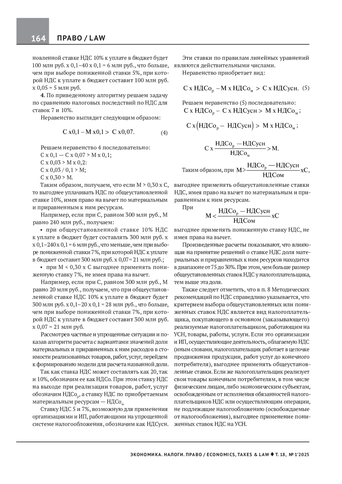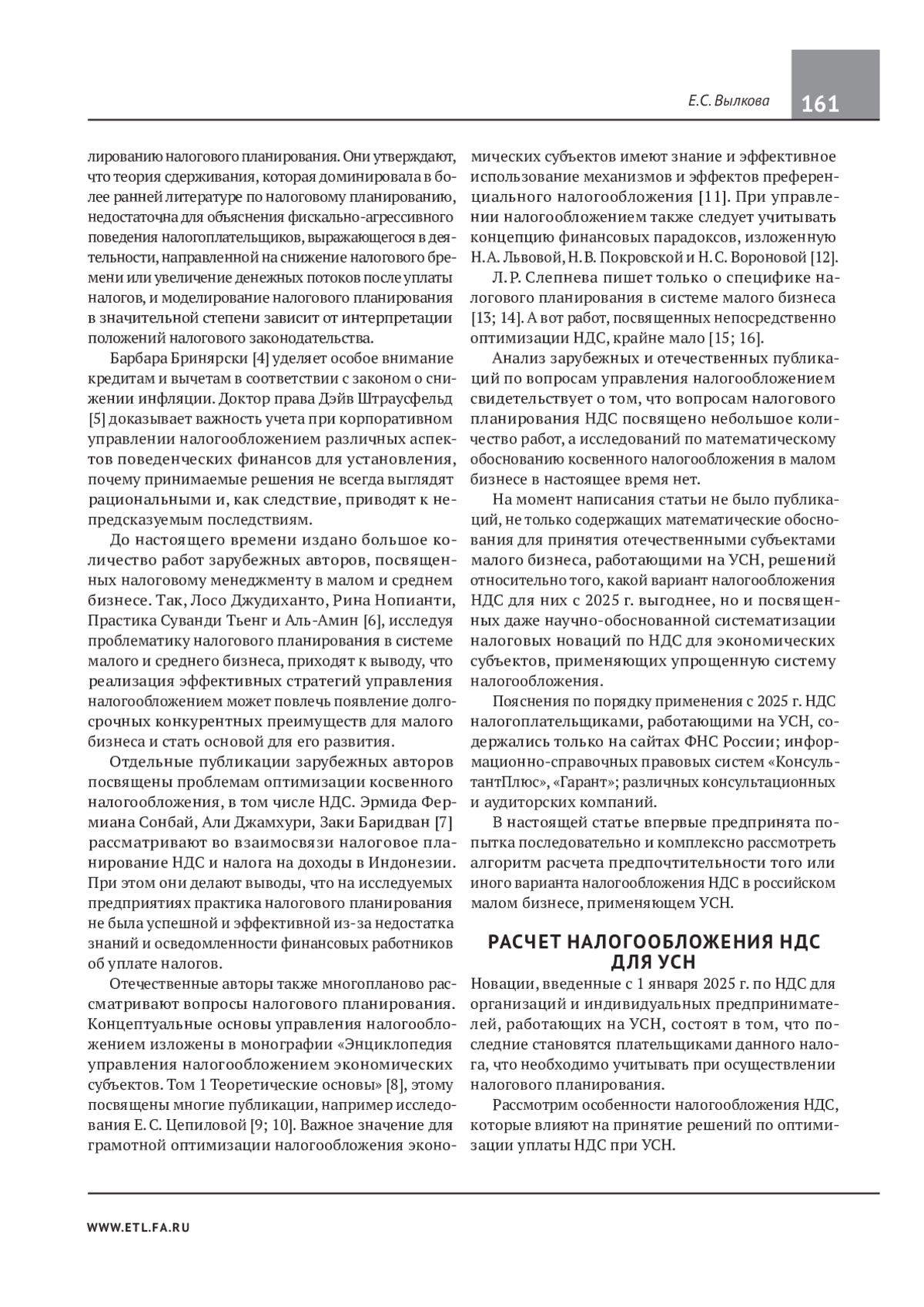ВЫЛКОВА Е. С. ОБОСНОВАНИЕ ВЫБОРА СТАВКИ НДС НАЛОГОПЛАТЕЛЬЩИКАМИ УПРОЩЕННОЙ СИСТЕМЫ НАЛОГООБЛОЖЕНИЯ // ЭКОНОМИКА. НАЛОГИ. ПРАВО. 2025. Т. 18 № 1