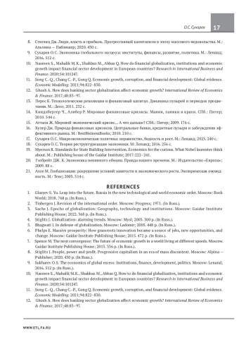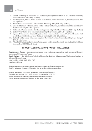 9. Сухарев О. С. Экономика глобального эксцесса: институты, финансы, развитие, политика. М.: Ленанд; 2016. 512 с. EDN: YTJXVD