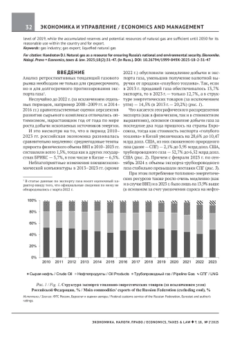 Актуальность исследования обусловлена увеличением добычи сжиженного природного газа в отличие от нефти, по которой прослеживается тенденция к сокращению производства вследствие того, что газовая отрасль считается более эффективной и привлекательной с точки зрения создания добавленной стоимости. Предмет исследования — процессы трансформации основных направлений развития российского газового рынка. Цель работы — установление возможности диверсификации поставок газа в восточном направлении. Установлено, что за период 2010–2023 гг. на 29,4 п. п. сократилась доля старых районов газодобычи: Надым-Пур-Тазовского и Волго-Уральского — и вырос удельный вес новых разведанных запасов «голубого топлива»: Ямал-Гыдана и шельфа Каспийского моря. В наибольшей степени увеличилась добыча газа на полуострова Ямал и Гыдан после ввода в эксплуатацию трех крупных месторождений: Утреннего, Южно-Тамбейского и Бованенковского. Спрогнозировано, что значимость природного газа (наряду с нефтью и нефтепродуктами) — одного из ключевых источников валютных поступлений в бюджетную систему — будет сохраняться достаточно долго, стоимость экспорта газа из России к 2030 г. увеличится на 12,4% до 57,6 млрд долл. США, а доля в суммарных поставках сократится на 12,3 п. п. до 10,3%. Сделан вывод о том, что, несмотря на геополитические обстоятельства и введенные против нашей страны санкции, поставки газа на экспорт до 2050 г. останутся стабильными, а по некоторым направлениям превысят уровень 2019 г., тогда как накопленных запасов и потенциальных ресурсов природного газа достаточно до 2050 г. для его разумного использования внутри страны и поставок на экспорт