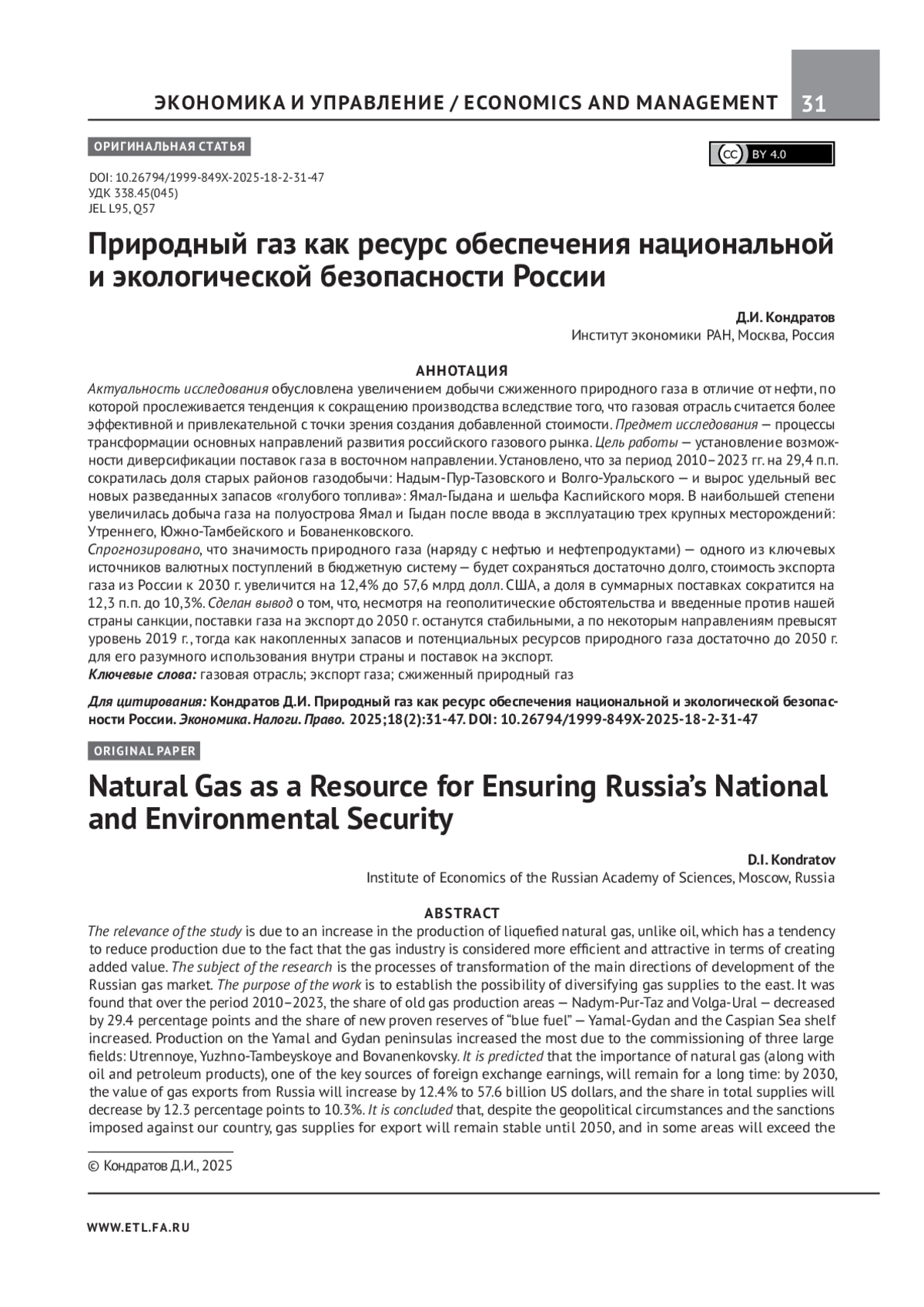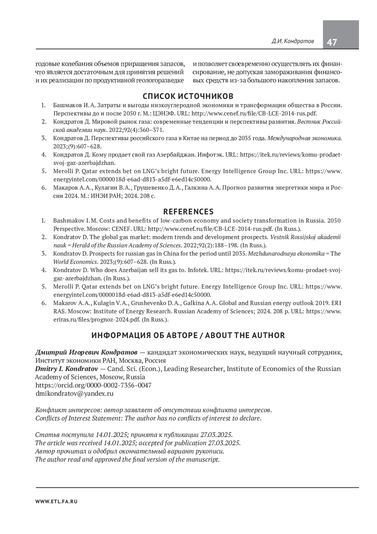 3. Кондратов Д. Перспективы российского газа в Китае на период до 2035 года. Международная экономика. 2023;(9):607-628. EDN: JKZDFI