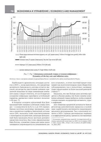 Предмет исследования — задачи, принципы, меры и инструменты, механизм и факторы реализации налоговой политики государства на среднесрочный период 2025–2027 гг. в новых геополитических и внутринациональных экономических условиях. Актуальность работы предопределена вступлением в силу с начала 2025 г. многих из принятых Правительством РФ решений в отношении системы налогообложения организаций, индивидуальных предпринимателей и физических лиц, основная цель которых — адаптировать налоговую систему к новым условиям для выполнения поставленных Президентом РФ задач по обеспечению бюджетной устойчивости государства при реализации принципа справедливости в подоходном налогообложении. В связи с тем, что многие вопросы достаточности намеченных мер в контексте достижения целевых показателей по национальным проектам, а также глубины донастройки налоговой системы в условиях заявленной налоговой реформы остаются дискуссионными, задача исследования состояла в определении и оценке уровня еe готовности к реформированию. Особое внимание в работе уделено проблемам соблюдения современных принципов функционирования и организации налоговых отношений, а также новым подходам к обеспечению взаимодействия их участников. Установлено, что вклад налоговой политики в экономическое развитие России должен быть более весомым в связи с ее обусловленностью процессом структурной трансформации экономики как результат достижения национальных целей развития страны. По результатам исследования сделан вывод о том, что формирующийся сегодня комплекс мер по усилению стимулирования налогообложения и повышению эффективности налогового администрирования в перспективе потребует не только его корректировки, но и определенной донастройки