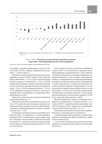 Предмет исследования — динамика уровня жизни российского населения. Цель работы — определение основных трендов в решении задач достижения достойного уровня жизни населения и уменьшения социального неравенства в обществе. Рассмотрено влияние экономической динамики на положение домохозяйств/семей с разным уровнем доходов; выявлены усиление дифференциации по доходам, а также увеличение доли расходов на питание у семей с самыми низкими доходами, а также сельского населения по сравнению с горожанами. Особое внимание уделено динамике уровня жизни пенсионеров и отставанию индексации пенсий от роста цен. Подчеркнуто, что, несмотря на рост валового дохода на душу населения в последние десятилетие, в число самых бедных регионов страны входят одни и те же субъекты Российской Федерации, что свидетельствует о недостатках региональной политики федерального центра. Благодаря выявлению несовершенства учета в индикаторах Росстата признаков недоедания, вызванного недостаточным или неадекватным питанием, и анализу содержания социальной политики России сделаны выводы о необходимости усиления эгалитарности социальной политики и увеличения точности измерения уровня бедности, как минимум, до сотого (0,00%) или даже тысячного знака в показателе недоедания Росстата, свидетельствующем о минимальном количестве пищевых продуктов, необходимом для поддержания жизни человеческого организма.