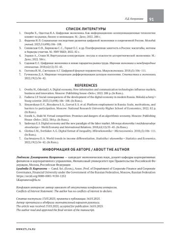 6. Глотина И. М., Светлаков А. Г. Цифровой формат неравенства. Микроэкономика. 2018;(5):106-111. EDN: YMVOMH
