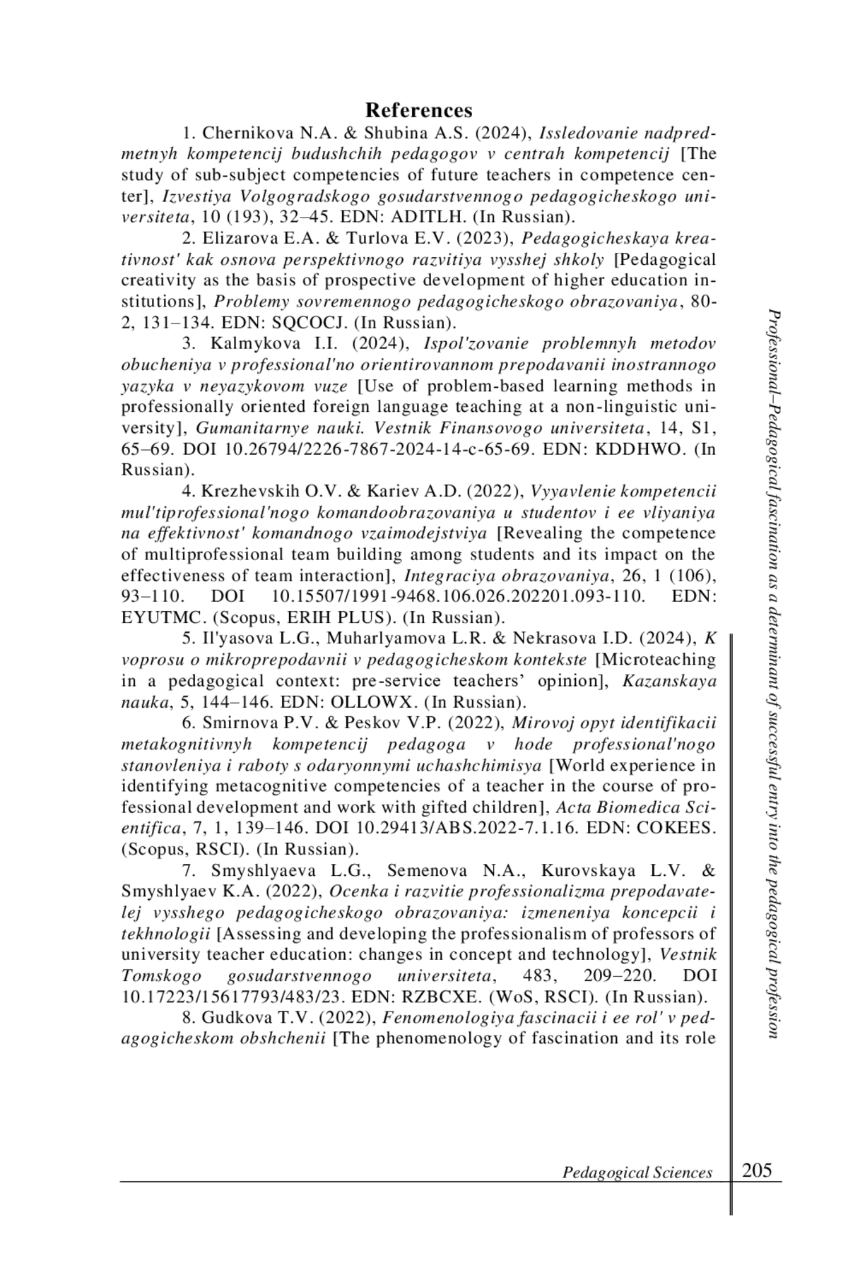 8. Гудкова Т. В. Феноменология фасцинации и ее роль в педагогическом общении // Развитие человека в современном мире. 2022. № 1. С. 40-48. EDN: ZQOTAG