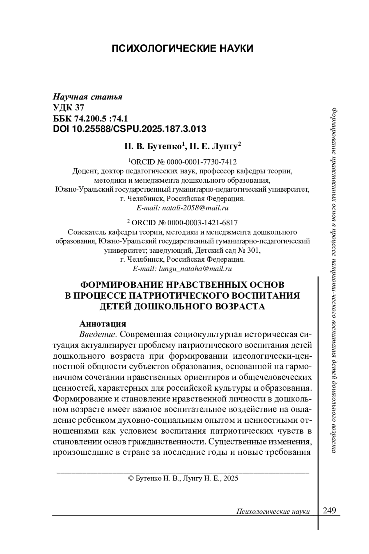 2. Быков А. К., Борисова Т. С., Берлянд Ю. Б. Педагогические условия формирования ценностных ориентаций детей в процессе реализации программ воспитания в образовательной организации // Вестник Томского государственного университета. 2022. № 482. С. 172-181. 10.17223/15617793/482/18. (WoS). DOI: 10.17223/15617793/482/18.WoS EDN: EVTHXF