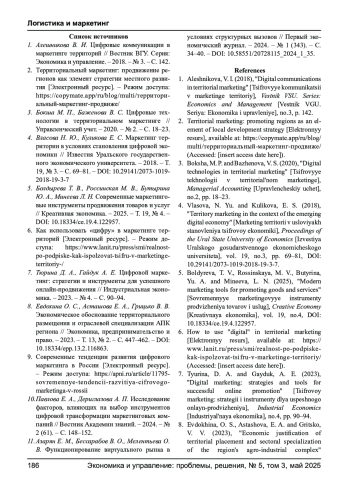 3. Бокша М. П., Баженова В. С. Цифровые технологии в территориальном маркетинге // Управленческий учет. - 2020. - № 2. - С. 18-23. EDN: XNBLOO