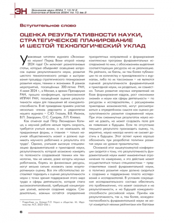Постоянное усложнение и ускорение процессов научно-технологического развития требует непрерывного совершенствования методологии их прогнозирования и планирования. Целью статьи является описание закономерностей смены технологических укладов (ТУ) и основ государственного и децентрализованного управления этими процессами. В статье описана структура 6-го ТУ, обоснован выбор продуктовых позиций, дающих представление о его глобальном развитии и отставании России от ведущих стран мира. Раскрыты сложности, возникающие в процессе изучения научно-технологического развития. Приведены основы сбора технологических статистических данных, описана методология построения логистических кривых распространения технологий 6-го ТУ и измерения отставания России от ведущих стран мира. Проведённое исследование наличия компаний и научно-исследовательских коллективов 6-го ТУ показало, что все технологии 6-го ТУ представлены в России. Приведены примеры рекомендаций по ускорению научно-технологического развития России в соответствии со Стратегией научно-технологического развития России. Несмотря на имеющееся значительное научно-технологическое отставание России, выполнение приведённых в статье и подобных им подлежащих разработке взаимосвязанных сетевых рекомендаций позволит России вырваться в лидеры мирового научно-технологического развития на основе будущих природоподобных технологий с центральной ролью медицины в экономике.