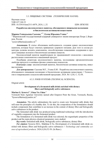 Власенко В.В., Соломон А.Н., Крыжак Л.Н. Разработка технологий кисломолочных продуктов с использованием растительных наполнителей // Известия вузов. Пищевая технология. 2013. № 5. С.38-42. EDN: ROOGZN