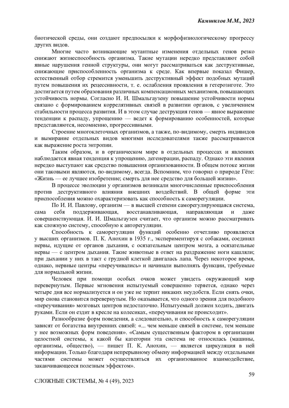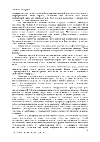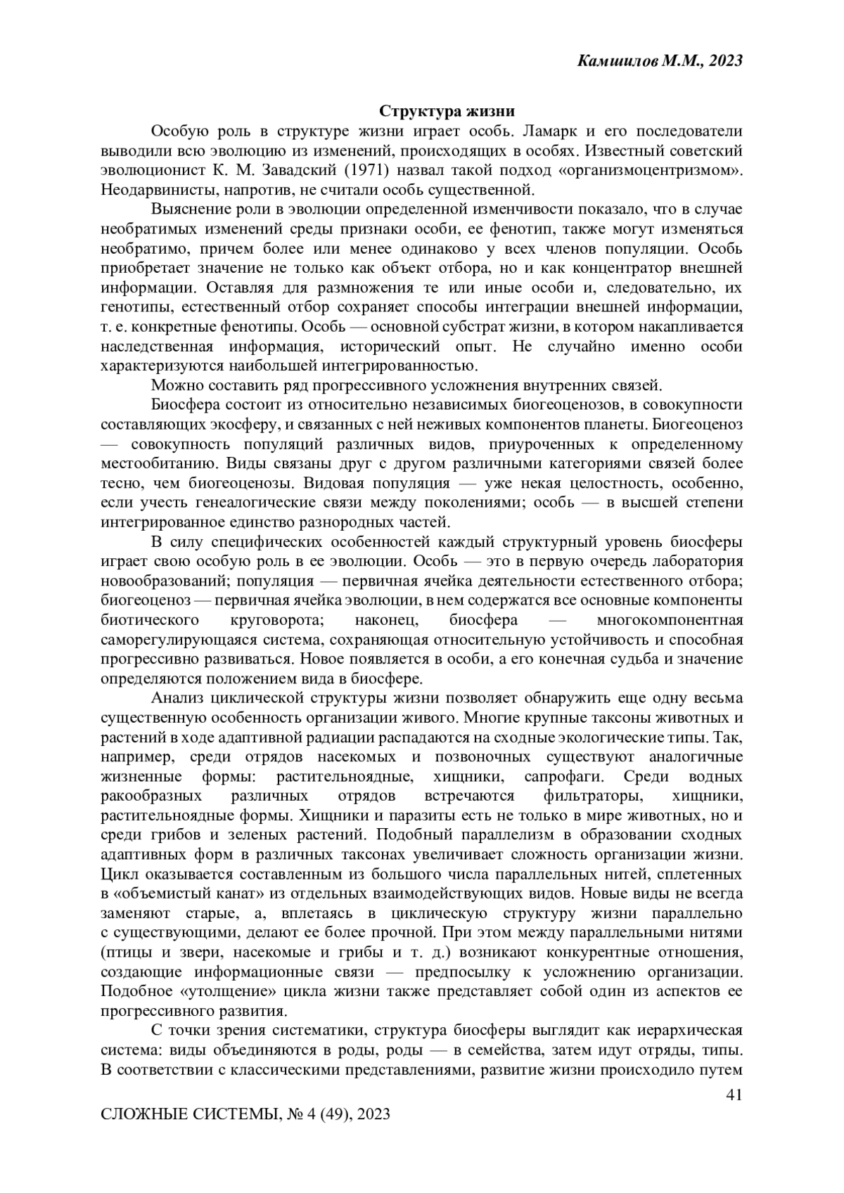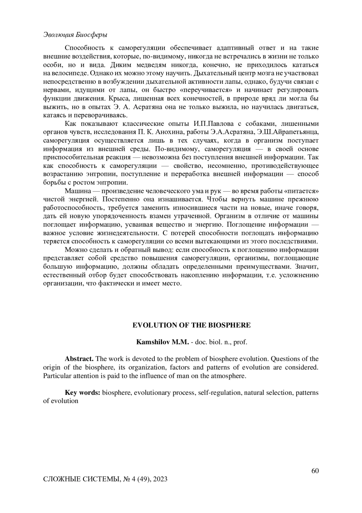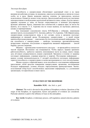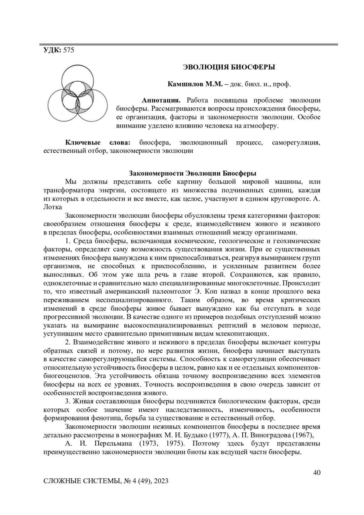 КАМШИЛОВ М. М. ЭВОЛЮЦИЯ БИОСФЕРЫ // СЛОЖНЫЕ СИСТЕМЫ. 2023. № 4 (49)