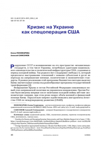В статье показана эволюция подходов США к расширению зон своего влияния и практики применения моделей по созданию лояльных Вашингтону режимов. Доктрина «Госстроительство 1.0» была ориентирована на жёсткое подчинение политий Карибского бассейна. «Госстроительство 2.0» камуфлирует прежние цели доминирования концептами либерализма и демократии. Строительство вассального государства на Украине – это специальная операция, от которой США вряд ли откажутся.