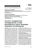 ВВЕДЕНИЕ. В статье представлена эволюция правового регулирования института продвинутого сотрудничества как правовой формы гибкой интеграции в праве Европейского союза (ЕС). Гибкая интеграция является достаточно распространенным и объективно существующим правовым явлением в практике различных интеграционных объединений. Однако именно в рамках права ЕС концепция продвинутого сотрудничества получила наибольшее развитие и правовую регламентацию. Во многом это было обусловлено желанием ЕС упорядочить и подчинить союзным правилам альтернативные формы сотрудничества между государствами – членами ЕС. Вполне закономерно, что межгосударственное взаимодействие в рамках того или иного интеграционного сотрудничества приобретает все более комплексный характер, а сотрудничество государств-участников интеграционного объединения в пределах того или иного направления взаимодействия имеет неравномерный и неоднородный характер.