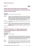 Технологично реализуемая разноуровневая подготовка специалистов остается актуальной проблемой, для решения которой необходимо по-новому учить студентов ставить, быстро и качественно решать профессиональные проблемы. Интерактивная организация иноязычной проблемной лекции обеспечит абсолютную готовность будущих специалистов к иноязычной профессиональной деятельности благодаря варьированию моделей мониторинга их разноуровневых умственных действий в малых группах в аудиторное и внеаудиторное время.