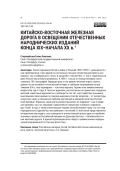 После поражения Китая в войне с Японией 1894–1895 гг. дальневосточная проблематика стала одной из постоянных тем для отечественной прессы как правого, так и либерального толка. В конце 80-х–начале 90-х гг. XIX в. издательское дело России значительно развилось. К 1895 г. только в столице империи насчитывалось 185 типографий. Ведущую роль в это время начинали играть газеты, однако это не ослабило читательский интерес к наиболее популярному на протяжении XIX в. типу периодики — толстому журналу. Тиражи этих ежемесячников возрастали год от года. В толстых журналах, рассчитанных на грамотных городских жителей, известные журналисты и публицисты тех лет, часто действуя анонимно, высказывали свое мнение по самому широкому спектру вопросов — от литературы, искусства, науки и техники до проблем внутренней и внешней политики Российской империи. Журналы чаще всего распространялись по подписке— как в пределах империи, так и за границей. Сравнительно невысокая стоимость подписки (до 10 руб. в год), а также значительные тиражи способствовали тому, что этот вид периодических изданий был востребован у читателей. В этой связи представляется интересным проследить, как освещался в отечественной прессе один из наиболее значимых проектов Российской империи на Дальнем Востоке — Китайско-Восточная железная дорога. В данной публикации речь пойдет о ежемесячнике народнической направленности «Русское богатство»