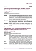 В статье исследуется правовое регулирование трудового договора, заключаемого с творческими работниками предприятий теле- и радиовещания. Отмечаются аспекты правового регулирования, не нашедшие отражения в разделе XII ТК РФ «Особенности регулирования труда отдельных категорий работников». Цель работы - исследование законодательства, регулирующего порядок заключения и содержания трудового договора с творческими работниками теле- и радиокомпаний, существенные условия договора, определение категории «творческий работник теле- и радиокомпании» в правовом регулировании труда творческих работников.