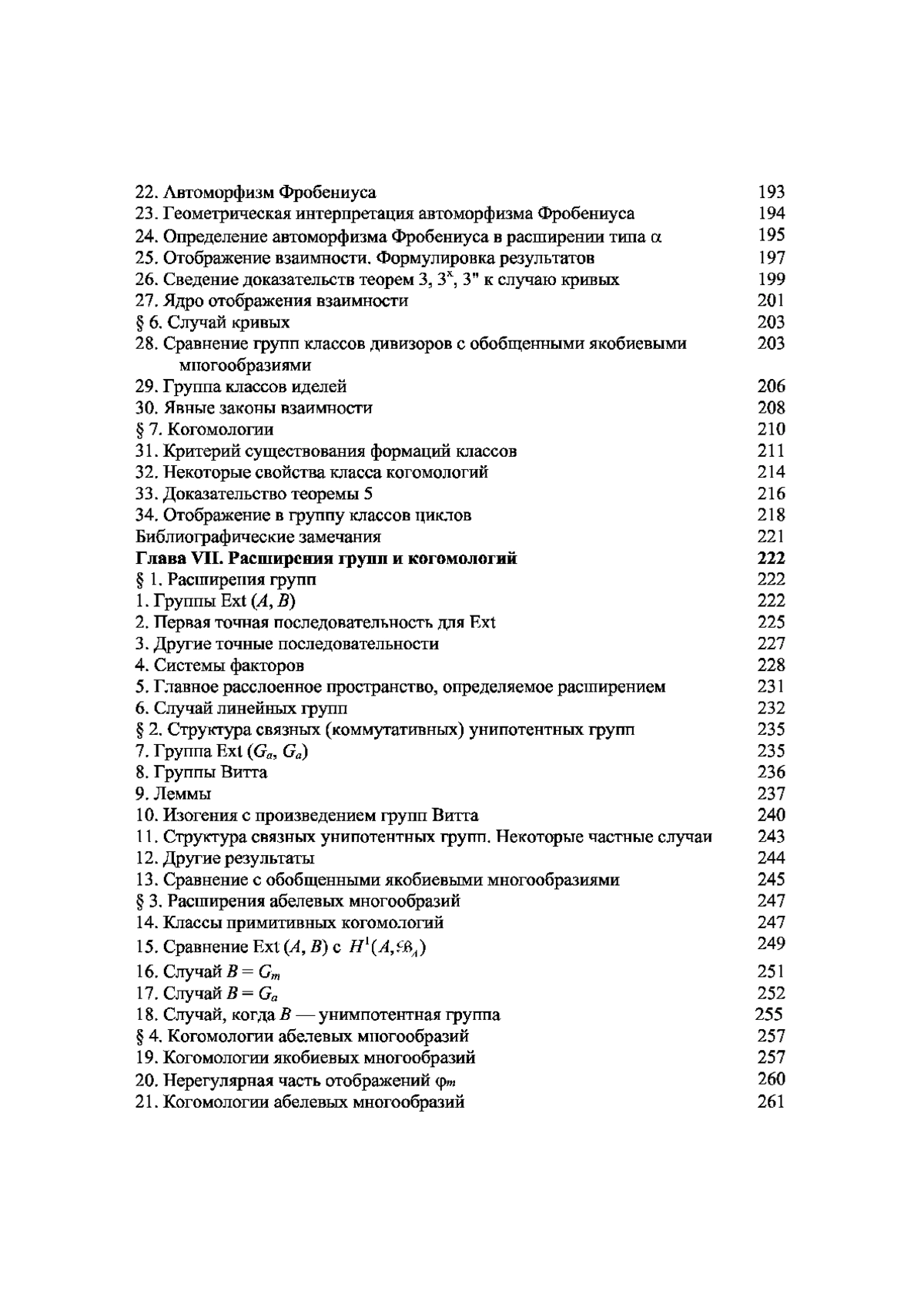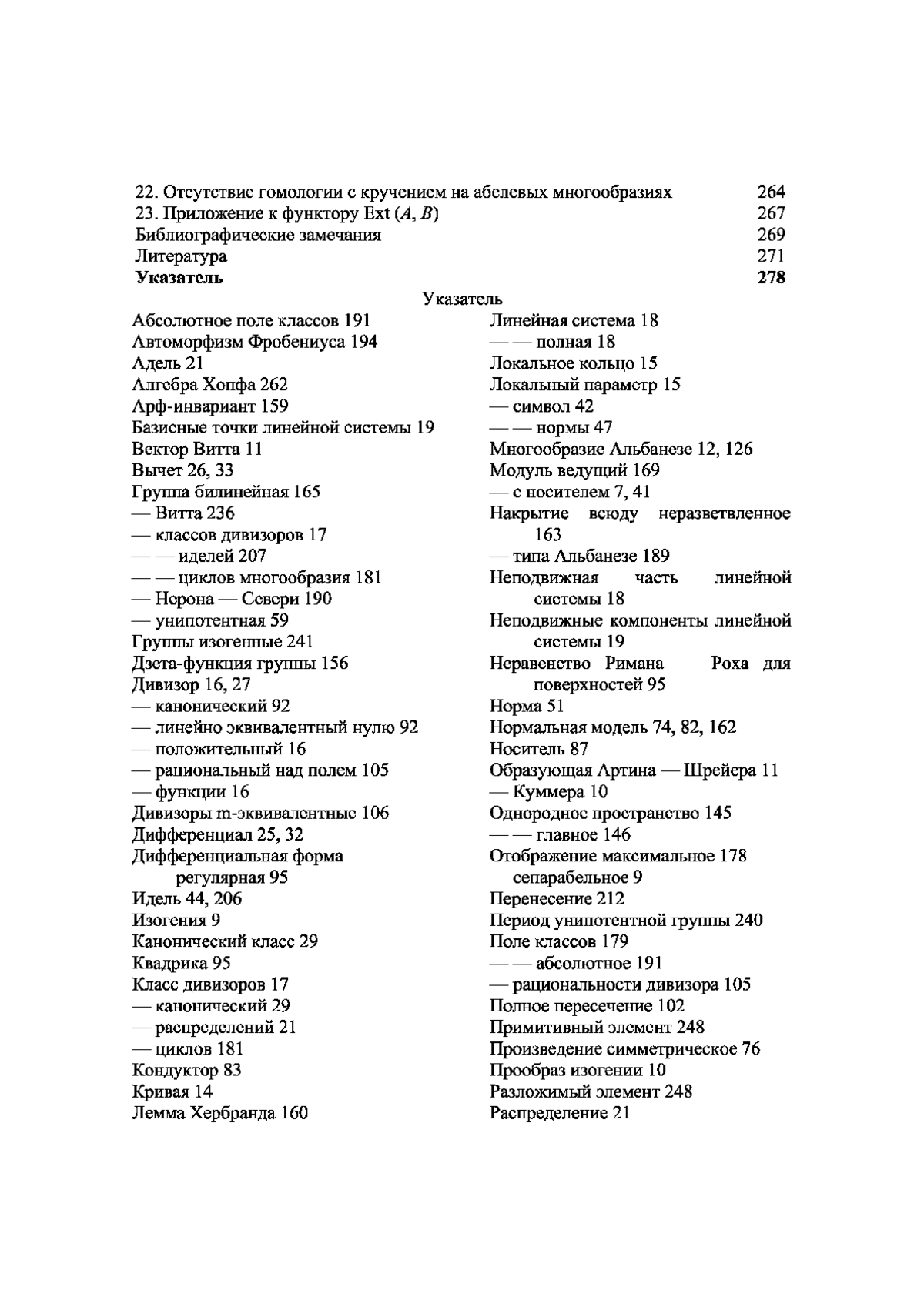С большим педагогическим мастерством в ней излагается ряд основных понятий алгебраической геометрии (алгебраические кривые и поверхности, теорема Римана — Роха, якобиевы многообразия кривых и т. д.).