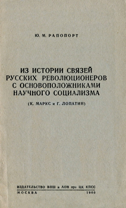 Книга: Из истории связей русских революционеров с основоположниками научного социализма (К. Маркс и Г. Лопатин)