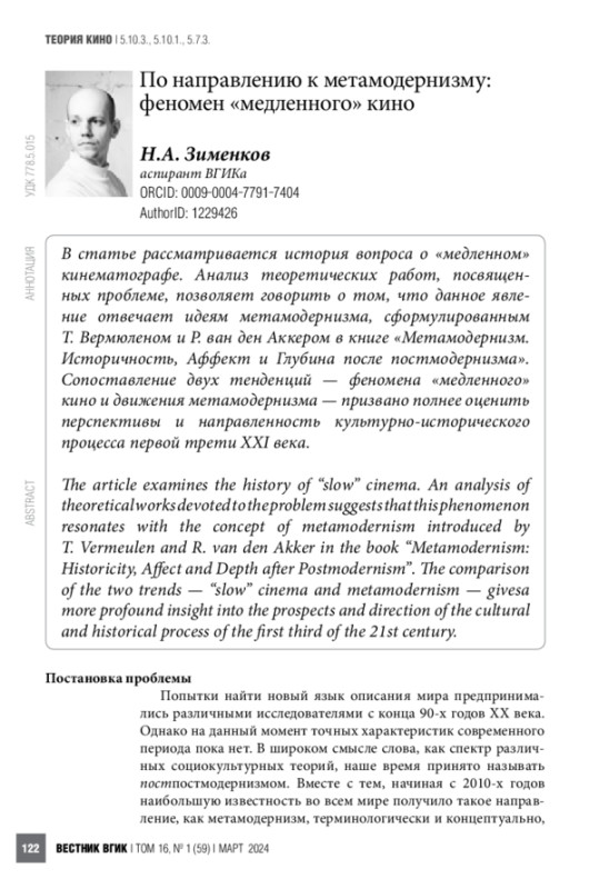 Статья: По направлению к метамодернизму: феномен «медленного» кино