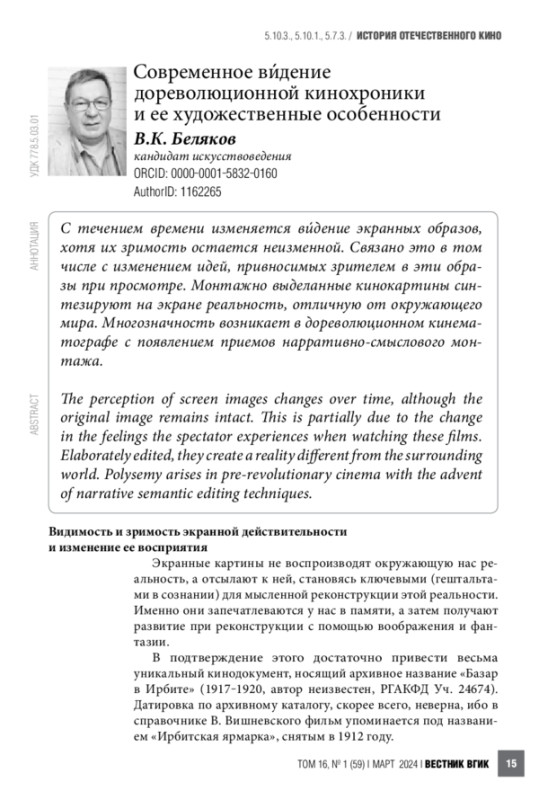 Статья: Современное ви́дение дореволюционной кинохроники и ее художественные особенности