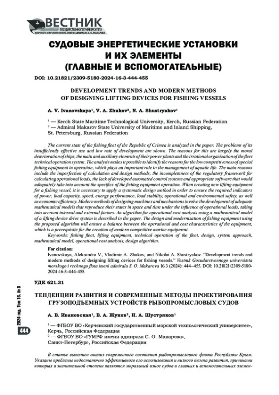 Статья: ТЕНДЕНЦИИ РАЗВИТИЯ И СОВРЕМЕННЫЕ МЕТОДЫ ПРОЕКТИРОВАНИЯ ГРУЗОПОДЪЕМНЫХ УСТРОЙСТВ РЫБОПРОМЫСЛОВОГО СУДНА