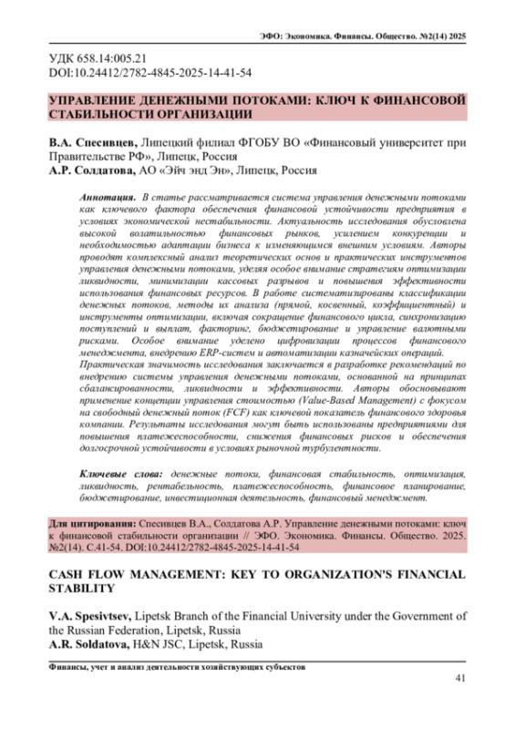 Статья: УПРАВЛЕНИЕ ДЕНЕЖНЫМИ ПОТОКАМИ: КЛЮЧ К ФИНАНСОВОЙ СТАБИЛЬНОСТИ ОРГАНИЗАЦИИ