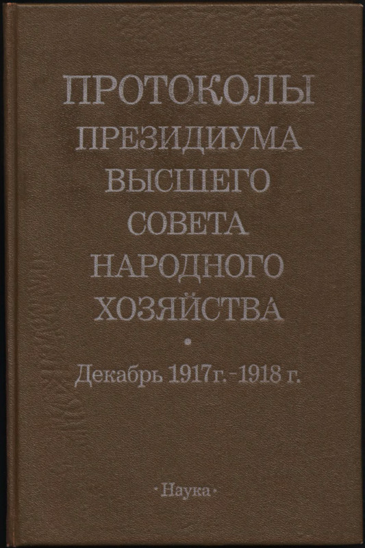 Протоколы Президиума Высшего Совета Народного Хозяйства (декабрь 1917 г. — 1918 г.). — М.: Наука, 1991.—000 с. ISBN 5020085626