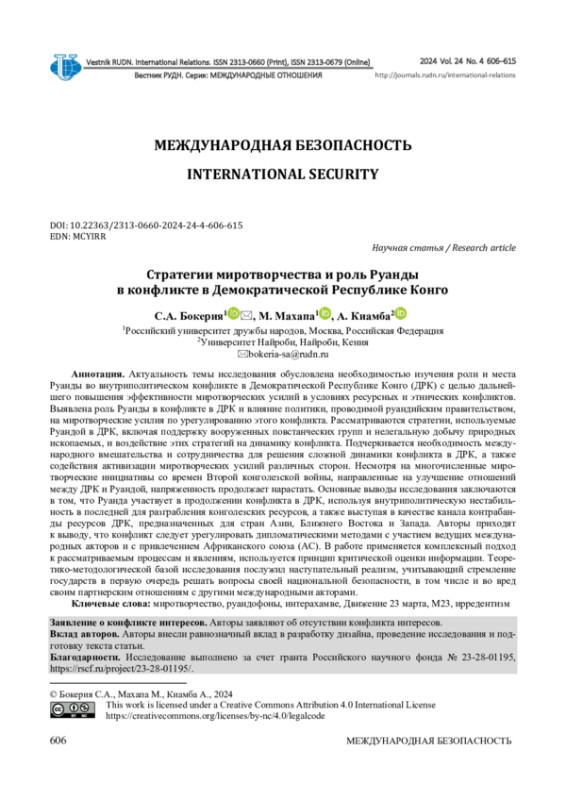 Статья: СТРАТЕГИИ МИРОТВОРЧЕСТВА И РОЛЬ РУАНДЫ В КОНФЛИКТЕ В ДЕМОКРАТИЧЕСКОЙ РЕСПУБЛИКЕ КОНГО
