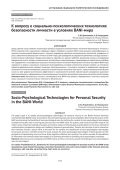 Целью данной статьи является актуализация вопроса социально-психологических технологий безопасности личности в BANI-мире. Для этого надо решить следующие задачи: определить сущность BANI-мира, доказать целесообразность социально-психологической безопасности и уточнить содержание социально-психологических технологий, определить их роль в обеспечении безопасности личности в BANI-мире. Для проведения исследования применялись методы анализа и контент-анализа публикаций междисциплинарного характера по данной проблеме, результатов научных исследований, современной печати; методы систематизации, экстраполяции, проектирования и моделирования, теоретического обобщения. Содержание и классификация социально-психологических технологий безопасности личности в условиях BANI-мира опираются на теории и концепции социального взаимодействия, в которое имманентно включен человек; на положения субъектно-деятельностного подхода; концепции конструкционизма и психологии познания в современной социальной психологии. В статье анализируются социально-психологические технологии трех групп с позиции репрезентации безопасности на трех уровнях (когнитивном, аффективном и конативном). В качестве перспективного направления рассматриваются возможности информационно-коммуникационных технологий для оказания социально-психологической помощи.