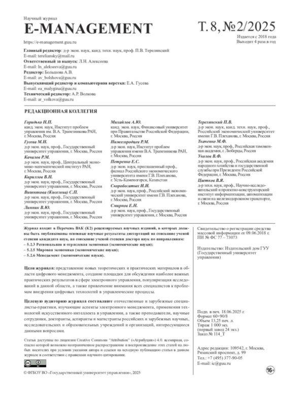 Работа посвящена исследованию проблем стратегического управления промышленностью в контексте социально-экономической трансформации российских регионов. В условиях глобальных изменений, вызванных внешними и внутренними факторами, такими как санкции, пандемия коронавируса, а также внутренние структурные трансформации социально-экономического комплекса, возникает необходимость пересмотра подходов к управлению промышленностью на региональном уровне. Автор рассматриваeт ключевые вызовы и возможности, стоящие перед российским промышленным сектором, анализирует существующие модели, инструменты стратегического управления и предлагает рекомендации по оптимизации управленческих процессов в регионах. Особое внимание уделяется вопросам адаптации промышленных предприятий к новым экономическим условиям, включая цифровизацию производства, развитие инноваций и повышение энергоэффективности. Рассматриваются механизмы государственной поддержки промышленности, направленные на стимулирование роста и модернизацию производственных мощностей. Подчеркивается важность межрегионального сотрудничества и координации действий федеральных и региональных властей для достижения устойчивого развития промышленного сектора. Автор делает акцент на необходимости разработки комплексных стратегических планов, учитывающих специфику каждого субъекта и ориентированных на долгосрочные перспективы, что отражено в перечне сформированных по результатам исследования принципов эффективного стратегического управления промышленностью Российской Федерации (далее – РФ, Россия) в условиях социально-экономической трансформации. Предложенные меры направлены на повышение конкурентоспособности российской промышленности на мировом рынке и обеспечение технологического суверенитета страны по результатам реализации принципов эффективного стратегического управления промышленностью России. Исследование основывается на системном анализе, обзоре статистических данных, официальных документов и экспертных оценок, что позволяет сделать обсуждения и выводы работы объективными и применимыми на практике в контексте формирования механизмов государственного управления экономической системой и развития промышленного потенциала РФ.