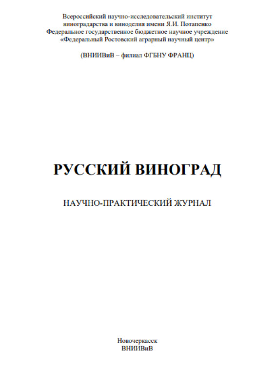 В статье представлены результаты изучения нового бессемянного сорта винограда Gratitude селекции Университета штата Арканзас, США. Рассмотрены основные агробиологические характеристики сорта, включая урожайность, зимостойкость, качество ягод и перспективы использования в промышленных насаждениях в неукрывной культуре. Сортоизучение проводилось на опытных участках ВНИИВиВ – филиал ФГБНУ ФРАНЦ. В исследовании были использованы общепринятые в виноградарстве методики и технологии возделывания насаждений. Виноградники неполивные, привитые на подвой Berlandieri × Riparia Kober 5BB, формировка веерная на среднем штамбе, схема посадки кустов 3 × 1,5 м. Сорт винограда Gratitude продемонстрировал ряд положительных характеристик: он имеет I класс бессемянности, плотную мякоть, хорошее сахаронакопление (до 22 г/100 см3) при относительно высокой кислотности (более 7 г/дм3). Средний вес гроздей составляет 258 г, средняя масса ягод – 3,8 г. Gratitude технологичен, характеризуется средней силой роста кустов, однолетний прирост вызревает очень хорошо. Сорт обладает высокой устойчивостью к болезням (на уровне 2,0–2,5 баллов). Результаты показали, что Gratitude имеет раннесредний срок созревания (128 дней от распускания почек до полной зрелости ягод). Несмотря на низкую урожайность и ограниченную зимостойкость, сорт Gratitude имеет определенный потенциал для производства сушеной продукции благодаря плотной мясистой мякоти, хорошему сахаронакоплению, неосыпающимся ягодам. Дальнейшие исследования могут быть направлены на изучение влияния различных агротехнических приемов на продуктивность и качество урожая данного сорта в укрывной культуре, также возможно рассмотреть использование сорта Gratitude в селекции бессемянных сортов как источник устойчивости к болезням.