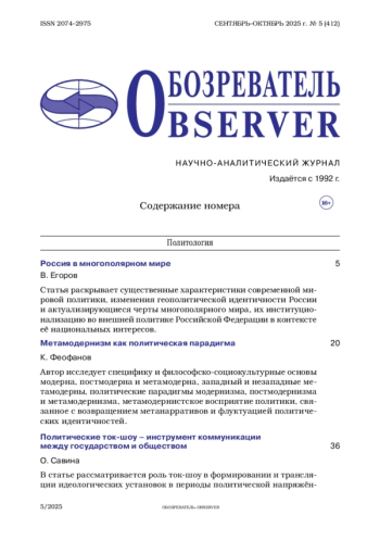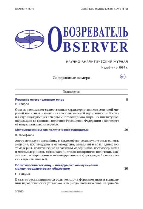Статья раскрывает существенные характеристики современной мировой политики, изменения геополитической идентичности России и актуализирующиеся черты многополярного мира, их институционализацию во внешней политике Российской Федерации в контексте её национальных интересов.
