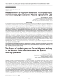 В статье анализируются коллективные представления о будущем приехавших в Россию в результате СВО беженцев и вынужденных переселенцев, с которыми было проведено 17 полуструктурированных интервью в период их нахождения как в пунктах временного размещения беженцев (ПВР), так и за их пределами. Результаты исследования показали, что переезд в РФ был добровольным: беженцы и вынужденные переселенцы рассматривали все альтернативные варианты и остановили свой выбор именно на России, где они смогли удовлетворить свою базовую потребность в безопасности. Общими для всех проблемами адаптации стали сложности с оформлением документов и бюрократия. Еще одним обременительным обстоятельством выступает низкий уровень правовой грамотности участников исследования. Основными акторами, оказывавшими поддержку и помощь беженцам и вынужденным переселенцам, стали государство и НКО, от которых участники исследования продолжают ожидать комплексной поддержки — от психологической помощи и упрощения бюрократических процедур до льгот на приобретение жилья. Авторы установили, что будущее является для беженцев и вынужденных переселенцев одним из самых насущных вопросов и актуальной темой обсуждений, при этом был выявлен короткий горизонт планирования, который определяется достижением ближайших целей, например успешным трудоустройством, поэтому говорить о среднесрочном или долгосрочном планировании не приходится. Кроме того, на горизонт планирования изучаемой группы существенное влияние оказывает процесс адаптации, внешний контекст и ход СВО.
