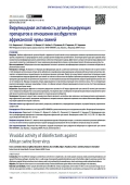 Материалы и методы. Исследовано 12 образцов дезинфицирующих средств с различным химическим составом. Первый этап по оценке свойств in vitro проводили суспензионным методом путем добавления к жидкофазному вируссодержащему материалу рабочих растворов испытуемых препаратов в экспериментальных концентрациях и при различном времени экспозиции. Второй этап осуществлялся посредством тестирования смывов с контаминированных вирусом африканской чумы свиней тест-пластин из бетона после их обработки рабочими растворами дезсредств. Каждый этап проводили в двух вариантах: без органического загрязнения и с его имитацией (экспозиция инактивированной сыворотки крови крупного рогатого скота на тест-поверхности). Образцы исследовали методом вирусовыделения в чувствительной культуре клеток селезенки свиньи. Учет и интерпретацию результатов проводили в реакции гемадсорбции. Считали, что образец препарата обладал вирулицидной активностью при отсутствии репродукции вируса африканской чумы свиней.