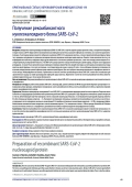 Результаты. Выполнено молекулярное клонирование N-гена SARS-CoV-2 с использованием прокариотической системы экспрессии. Получены клоны Escherichia coli, продуцирующие рекомбинантный нуклеокапсидный белок SARS-CoV-2 размером 33 кДа. Определены оптимальные условия экспрессии и очистки, обеспечивающие получение препарата антигена в высокой концентрации. Показано, что оптимальной концентрацией индуктора является 0,5 мМ, оптимальный период экспрессии – 4 ч. В результате исследования оптимальных условий очистки рекомбинантного антигена в качестве денатурирующего агента определена мочевина в концентрации 8 М, подобрана оптимальная концентрация имидазола – 0,4 М в элюирующем буфере. Использование оптимальной схемы экспрессии и очистки позволило получить 1,5 мг очищенного антигена с 100 мл культуры Escherichia coli. Показана высокая антигенная активность и специфичность рекомбинантного белка в непрямом варианте иммуноферментного анализа.