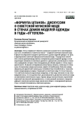Статья предлагает обратить внимание на ранее почти неисследованную часть потребления в Советском Союзе — создание советской мужской моды. В фокусе исследования находится деятельность домов моделей одежды и их роль в формировании советской официальной мужской моды. Посредством включения в анализ делопроизводственных материалов домов моделей одежды статья акцентирует внимание на ключевых диалогах и дискуссиях, возникавших в стенах этих учреждений, которые стали площадками для обмена идеями о стиле, моде и идентичности. В рамках исследования рассмотрены вопросы, связанные со сложными отношениями между мужчинами, модой и потреблением, балансом между официальной идеологией и реальными потребностями потребителей, а также влиянием международных модных тенденций на советскую моду. В статье показано, что советская мужская мода всегда находилась в тени моды женской, но при этом предполагалось, что она должна быть разнообразной и динамично меняться вслед за изменением политического курса. Однако ввиду технологических ограничений советской текстильной промышленности, а также условий системного товарного дефицита советская мужская мода имела мало общего с повседневной реальностью, с которой сталкивались советские мужчины