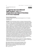 В статье рассмотрены сложности, с которыми столкнулись российские эмигранты в 1920-е гг. при получении высшего образования в Чехословакии. Новизна и актуальность представленного исследования заключается в формулировке проблемы, когда в центр внимания поставлена повседневная жизнь отдельной социальной группы — «студенчества». На основе данных фондов Национального архива Чешской Республики показано, что основными проблемами эмигрантов-студентов были жилье, здоровье и трудоустройство. Выявлено, что семейным студентам справляться с этими трудностями было сложнее. На основе анализа источников продемонстрированы способы преодоления сложностей, возникающих в жизни студентов. Комитет по обеспечению образования русских и украинских студентов в Чехословакии благодаря ассигнованиям Министерства иностранных дел Ч. С. Р. обеспечивал общежитием, проводил медицинские осмотры и амбулаторное лечение, выделял дополнительные пособия семейным студентам. Помощь в трудоустройстве выпускников (поиск работы в других странах, обучение дополнительному ремеслу) оказало Объединение русских, окончивших высшие учебные заведения в Ч. С. Р. В статье сделан вывод, что несмотря на все трудности студенческой жизни, молодые эмигранты смогли получить высшее образование, которое в дальнейшем помогло им адаптироваться к социальным, экономическим, политическим и культурным условиям страны проживания и занять достойное место в социальной структуре европейского общества