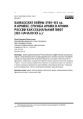 КАВКАЗСКИЕ ВОЙНЫ XVIII-XIX ВВ. И АРМЯНЕ. СЛУЖБА АРМЯН В АРМИИ РОССИИ КАК СОЦИАЛЬНЫЙ ЛИФТ (XIX-НАЧАЛО XX В.) (2023)