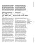 Рассматриваются взаимодействие и различие двух типологий сада, в общем виде понимаемых прежде всего как пространство для массового отдыха и развлечений, альтернатива повседневному существованию в мегаполисе. Первая типология ориентирована на чувственное, тактильное восприятие природной формы, нередко естественного происхождения, ассоциируемой с райским садом (Эдемом), проиллюстрированным художникамибарокко. Вторая - определяется заданным сценарием придуманного ритуала (перформанса) и поэтому конструируется на основе общественно признанных норм. Выдвигается концепция Нового Эдема - сада постиндустриального типа, актуализирующего персональное медитативное взаимодействие субъекта с проектным сценарием сада.