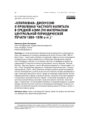 В статье рассмотрена публицистическая дискуссия по хлопковому вопросу, проходившая на страницах периодической печати России в 1880–1890-е гг. Цель статьи — анализ круга проблем и их решений в сфере частного хлопководства в Средней Азии, которые поднимались в публикациях периодических изданий Санкт-Петербурга и Москвы, но оставались при этом на периферии внимания исследователей. В качестве источника использованы статьи в журналах «Русский Вестник», «Вестник Европы», газетах «Московские ведомости», «Новое время», «Голос», «Санкт-Петербургские ведомости», «Правительственный вестник», «Торговопромышленная газета». Автор обозначил основные вопросы развития среднеазиатского хлопководства и участия в нем частного капитала, которые обсуждались в ходе «хлопковой» дискуссии в печати. Среди них проблемы кредитования частных предпринимателей, создания и развития крупных хлопковых плантаций, введения и ограничения хлопковой пошлины, борьбы с «хлопковой лихорадкой», организации сельскохозяйственных выставок и роли иностранного капитала. Автор приходит к заключению, что многообразие проблем и их решений сводилось к одному выводу: усиление частного капитала в хлопководстве необходимо, поскольку это является основой благополучия текстильной промышленности России, а значит, и ее благосостояния в целом