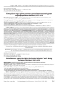 На основе изучения и анализа широкого круга источников в статье рассматриваются меры полицейских органов по пресечению и нераспространению влияния раскола в русском православном мире. Внимание уделено особенностям религиозной политики, проводимой Николаем I в рамках провозглашенного в стране курса, вошедшего в историю под названием «теория официальной народности». Материалы и методы. В работе с законодательными источниками, литературой научного характера, опубликованными статистическими данными, архивными, справочными и интернет-материалами преимущественно использовались системный и историко-сравнительный методы анализа привлеченного перечня источников. Результаты и обсуждение. Вопреки мнению, бытующему в отечественной историографии, период с 1825 г. по 1855 г. не был столь однозначным. С одной стороны, меры репрессивного характера, полицейский надзор, преследование раскольников, с другой — во многих регионах наблюдались «приемлемые», с точки зрения либерально настроенных представителей государственной власти, отношения между старообрядцами и светской властью, церковью, православным обществом. В 30-х гг. XIX в., в ходе кодификационного «упорядочения» российского права, было приведено в соответствие законодательство о старообрядцах. В это же время было положено начало более основательному изучению старообрядчества как социальнополитического и религиозного явления. Под эгидой МВД губернские власти и органы полиции на местах изучали различные аспекты старообрядческого общества, формировали статистические данные, что позволило коронной власти иметь достаточно объективную картину состояния староверия и проводить по отношению к нему более «выверенную» политику. Выводы. Выявлены особенности и основные направления религиозной политики Николая I, приведена законодательная база, дававшая основания полицейским органам отправлять свои профессиональные функции по отношению к расколу.